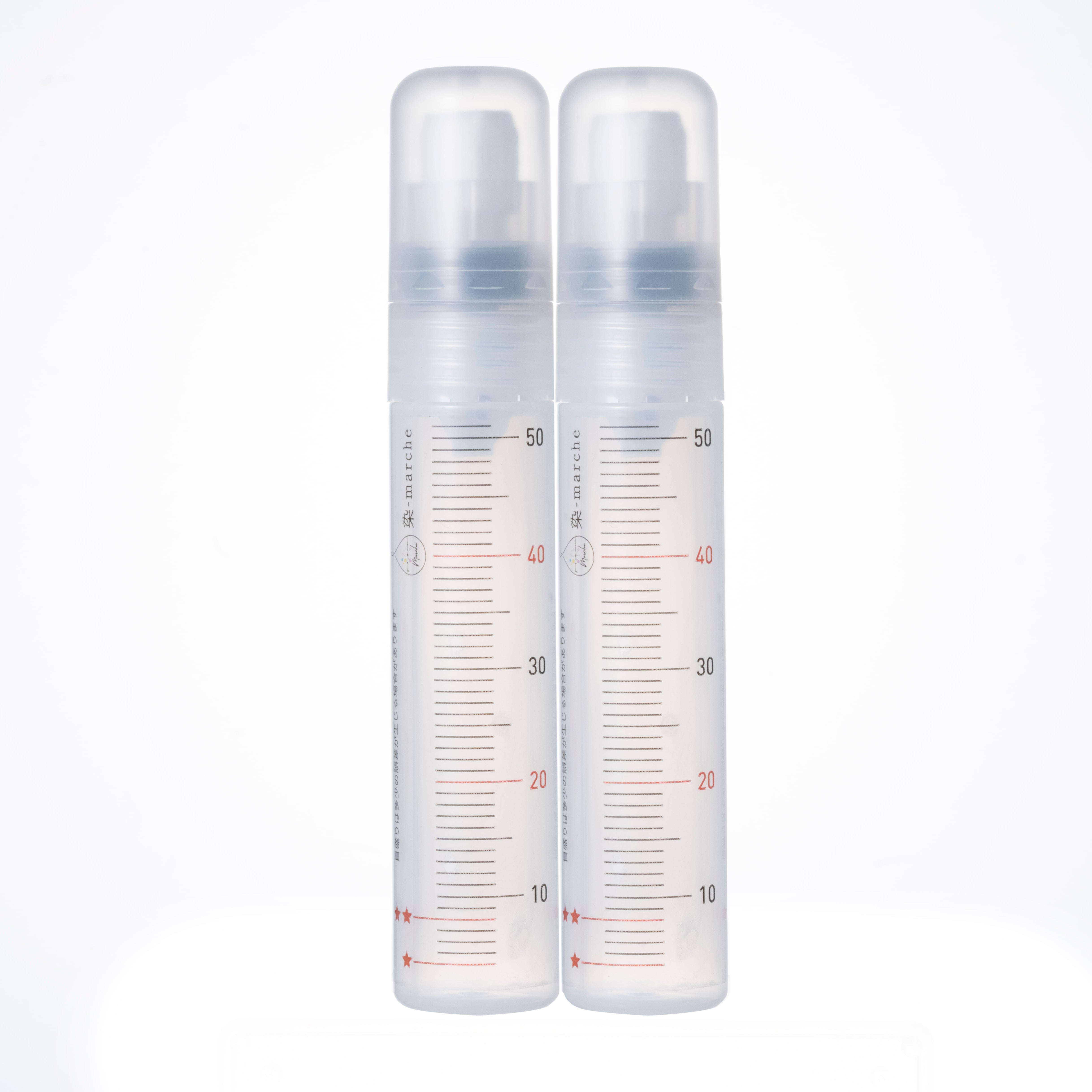 オリムパスさんでは、希釈用の道具としてイージーライナーという製品を販売しています。容器には計量用の目盛があり、フタにはマーカーペンのペン先みたいな部品が付いていて、染色液を調製後そのまま段染めに使用できます。詳しくはメーカーのサイトをご覧ください。